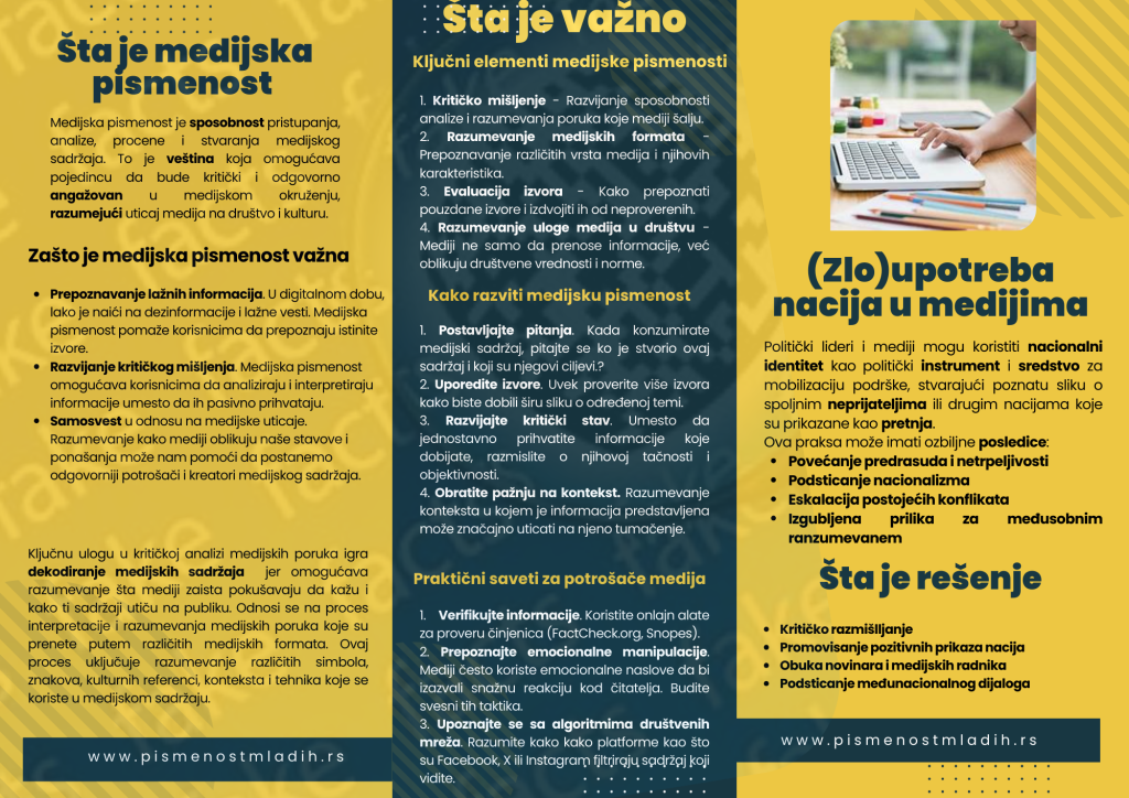 Kako je projektnim predlogom bilo i predviđeno, održali smo niz radionica na kojima smo predstavnike različitih nacionalnih zajednica u našoj zemlji malo bolje upoznali sa pojmom medijske pismenosti, medijske manipulacije, dekodiranja medijskog sadržaja, pre svega sa aspekta nacija i nacionalnog u medijima, naročito u multinacionalnoj sredini kakva je Srbija.